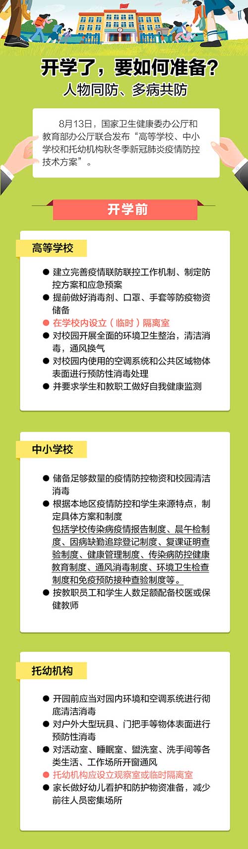? 為科學(xué)指導(dǎo)高等學(xué)校、中小學(xué)校和托幼機(jī)構(gòu)做好秋冬季新冠肺炎疫情防控工作,有序推進(jìn)秋季學(xué)期復(fù)學(xué)復(fù)課,國家衛(wèi)生健康委辦公廳和教育部辦公廳8月13日聯(lián)合發(fā)布“高等學(xué)校、中小學(xué)校和托幼機(jī)構(gòu)秋冬季新冠肺炎疫情防控技術(shù)方案”。秋季開學(xué)要準(zhǔn)備些什么?開學(xué)后要做些什么?返校學(xué)生需要什么條件?今天香柏世家兒童家具十大品牌--艾尚佳緣分享文圖讓您秒讀懂……
