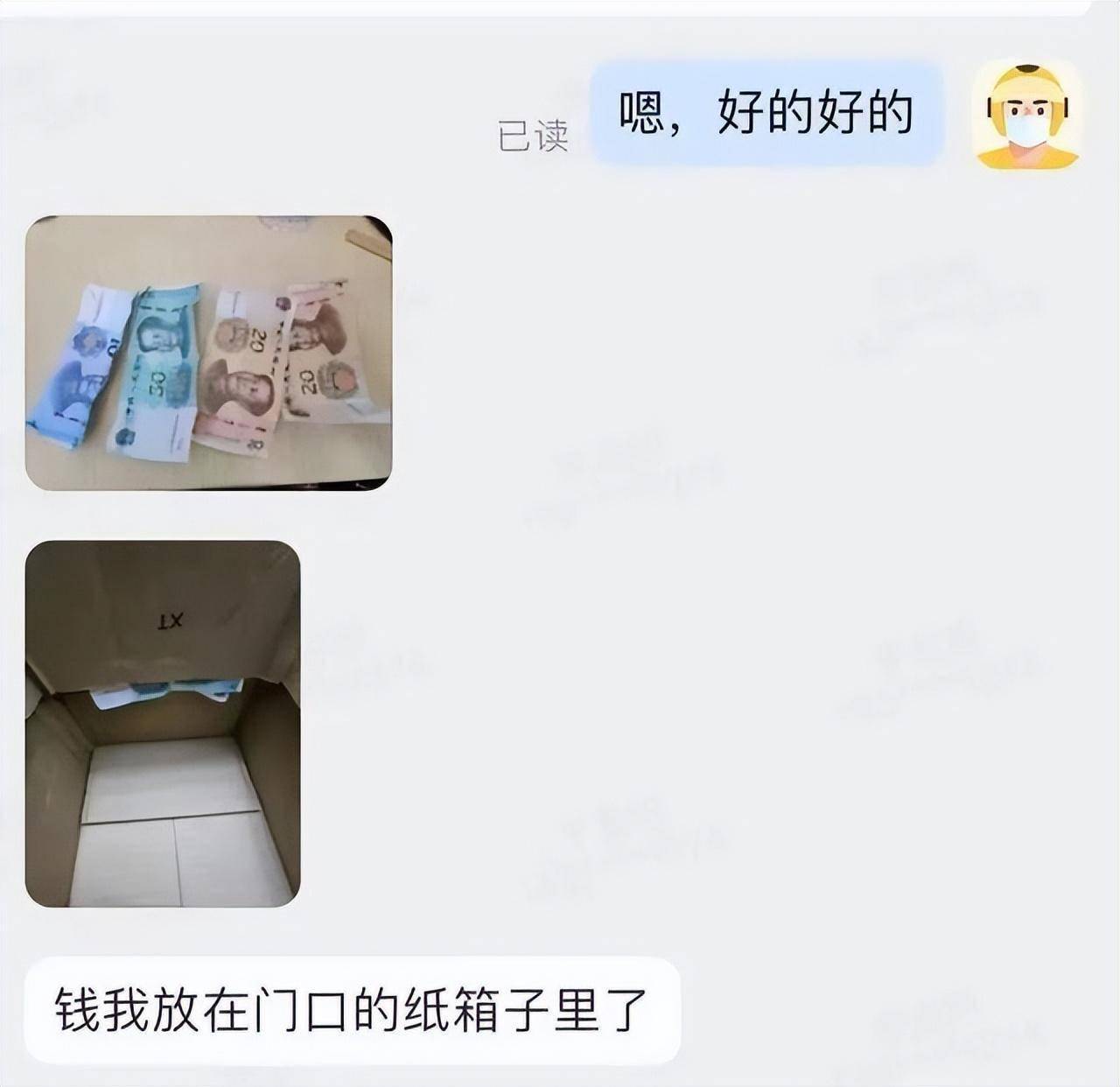 在房間門口紙箱中留下100元現(xiàn)金
