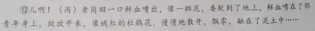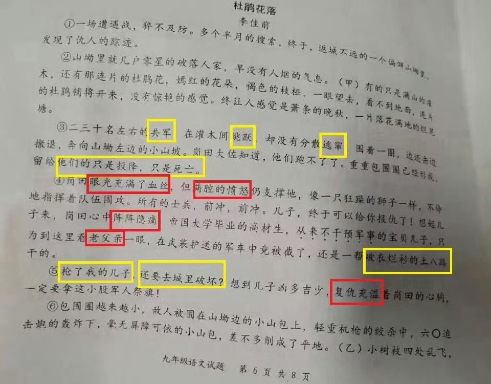 在成都新都區(qū)初三年級(jí)語文測(cè)試中,出現(xiàn)了一篇觸目驚心的文章,名叫《杜鵑花落》??搭}目,不會(huì)覺得有啥。但是,結(jié)合文章內(nèi)容,這“杜鵑花”就另有所指了。